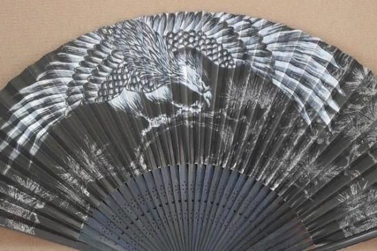 黒地に銀をあしらった鷹がかっこいい夏扇子です。